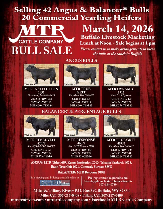 March 14, 2026 • 1pm • Buffalo Livestock Marketing